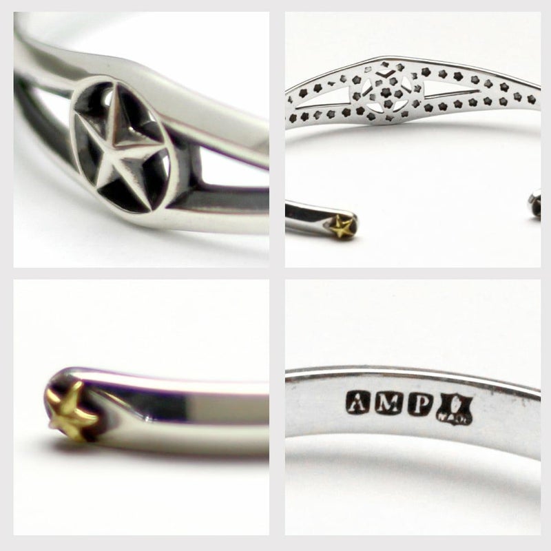 バングル裏にはブランドの刻印やスターの刻印が打ち込まれており、見えない場所にも遊び心を感じさせます