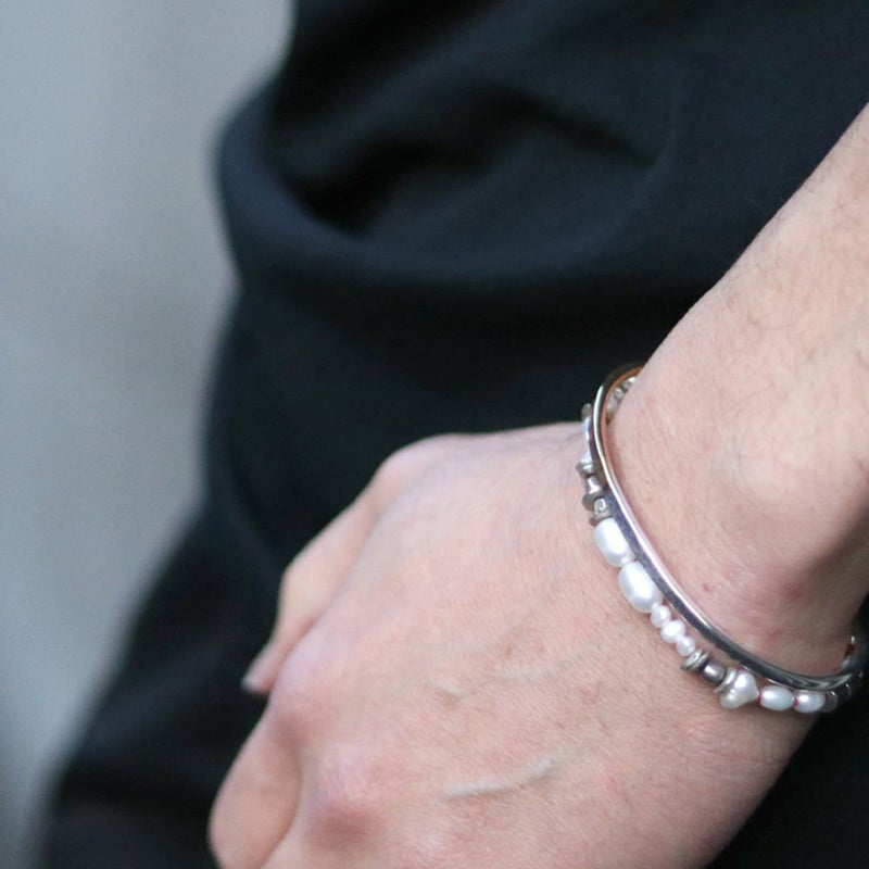新しいメンズアクセサリーのトレンドとして注目されている『パール』を 気軽にスタイリングに取り入れられるアイテムです