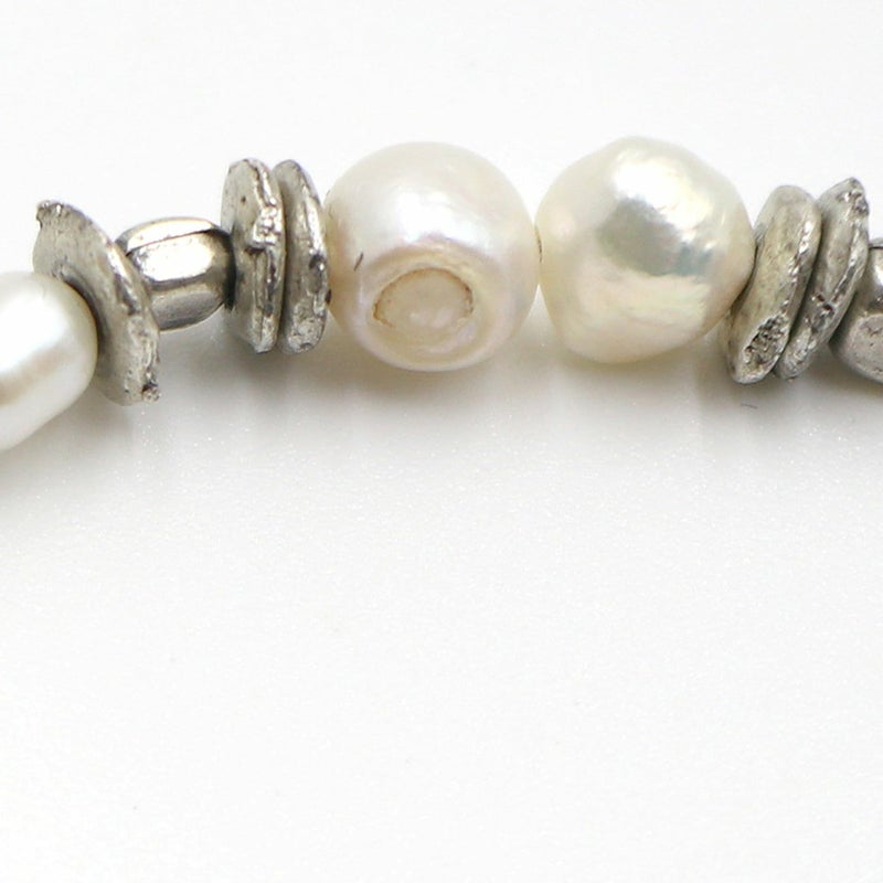 様々な形状の淡水真珠とメタルビーズを組み合わせたクレイジーパールブレスレット