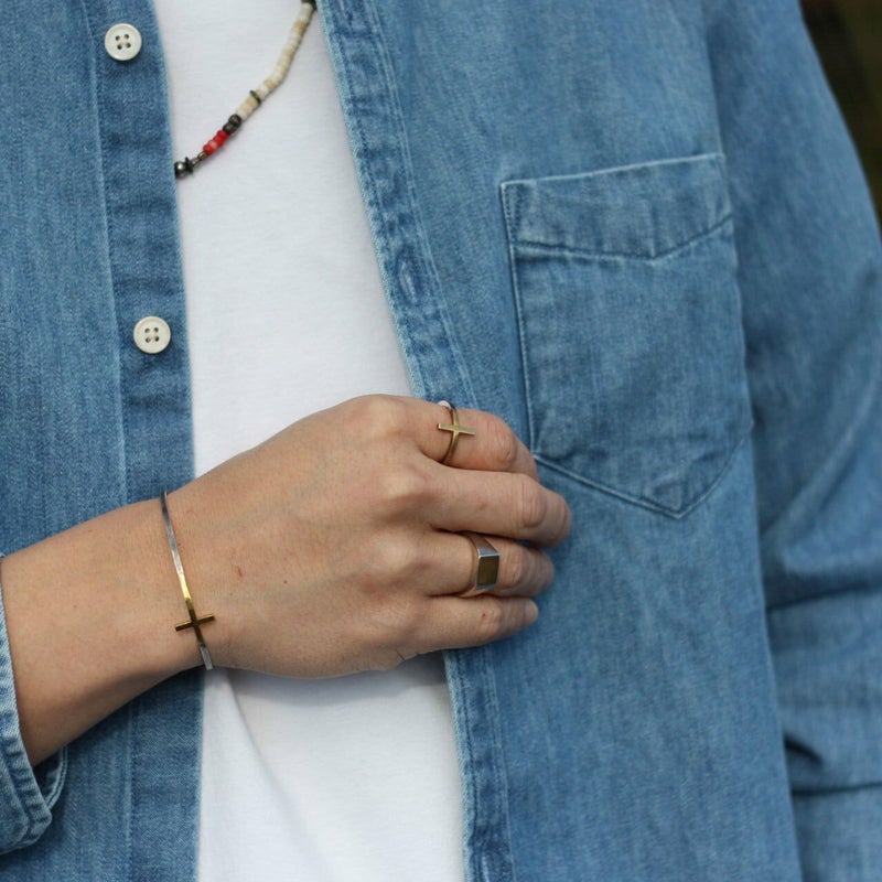 真鍮クロスとシルバーの2.0mmコンビネーションクロスリング