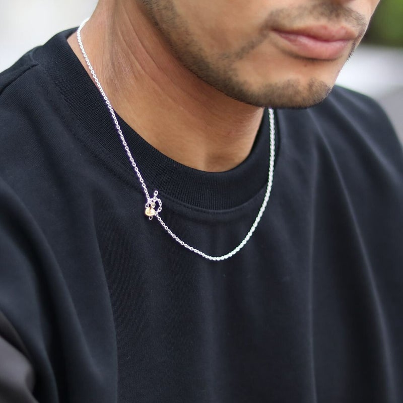 50cmチェーンと一体化したシルバー925製ケーブルチェーンをロウ付けしたマンテルとTバー