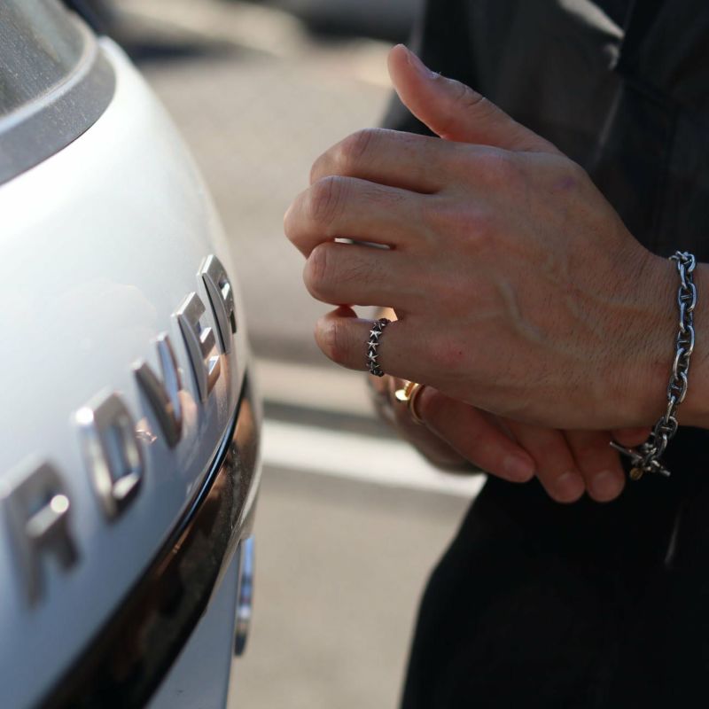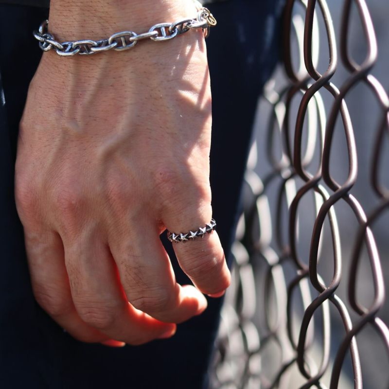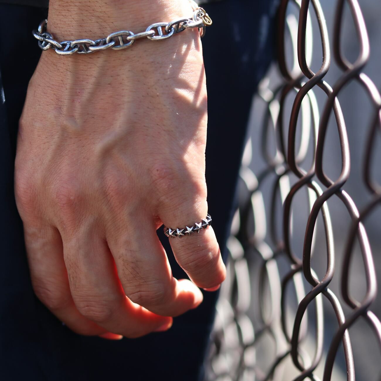 ピラミッドのように突起したシルバー925製のスタースタッズを一周連ねたリング