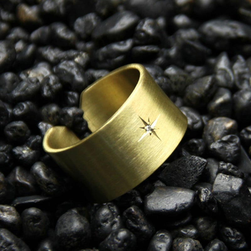 使い込まれた風合いを出した平打ち型の真鍮リングにジルコニア(人工ダイヤモンド)が輝く一本です