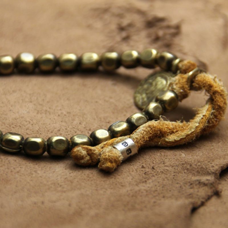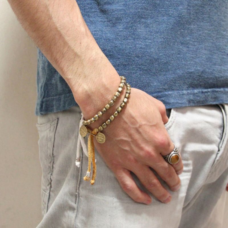amp japanより鹿革にヴィンテージ感のある真鍮ビーズを通したブレスレットが入荷しました