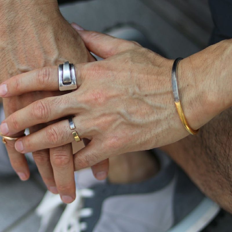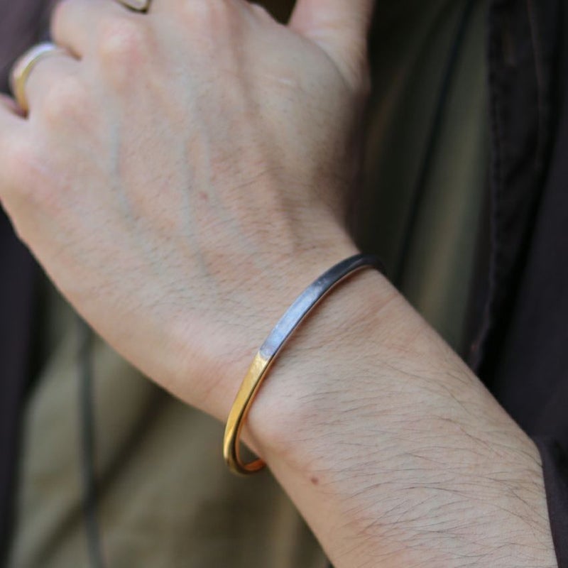 18金コーティングを施し、その一部を剥がし、燻し、磨き上げる。