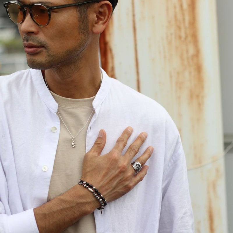 春夏の軽やかな装いにはもちろん、秋冬のレイヤードスタイルにもマッチし、オールシーズン着用可能。