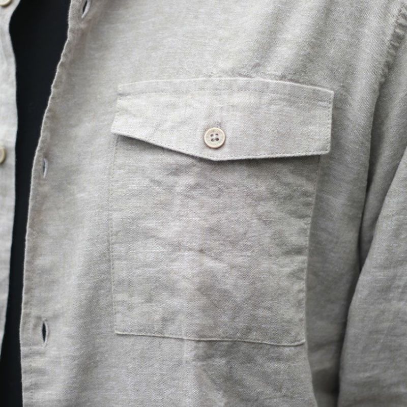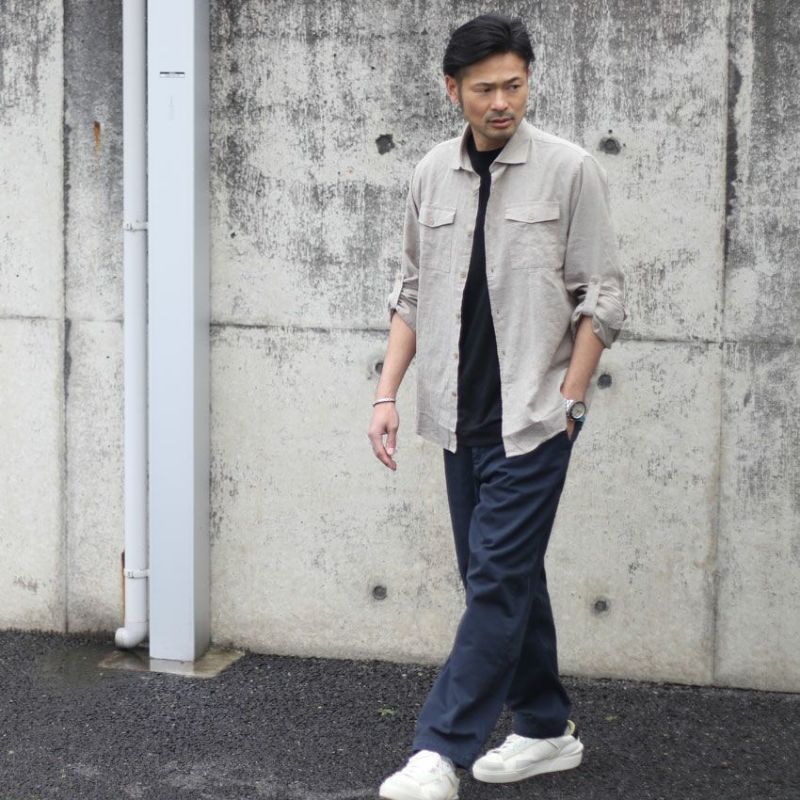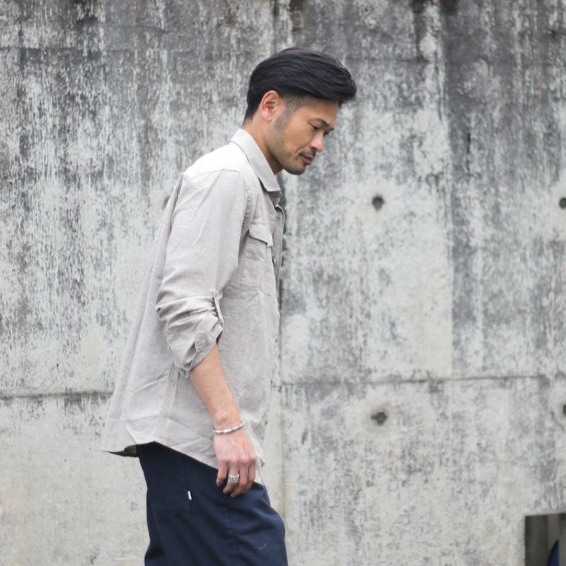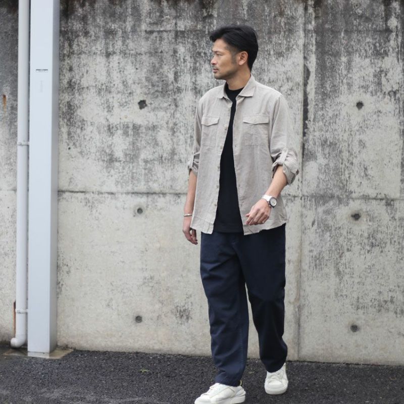素材はコットンリネンですが、チクチク感のない柔らかい風合いのリネンが快適な着心地を生みます。