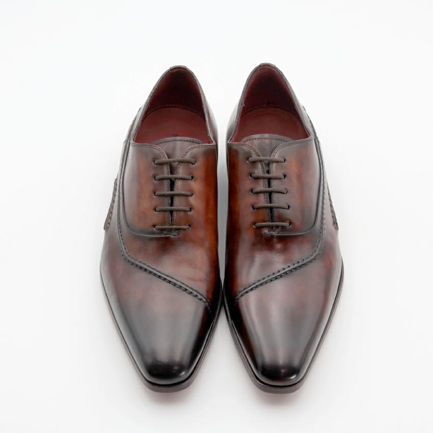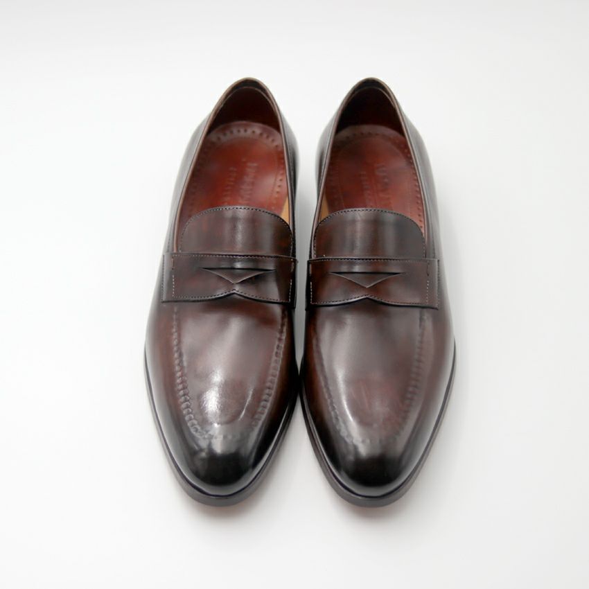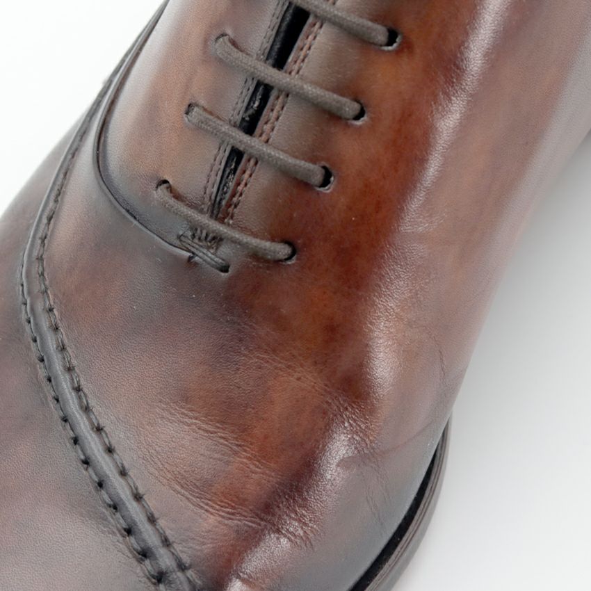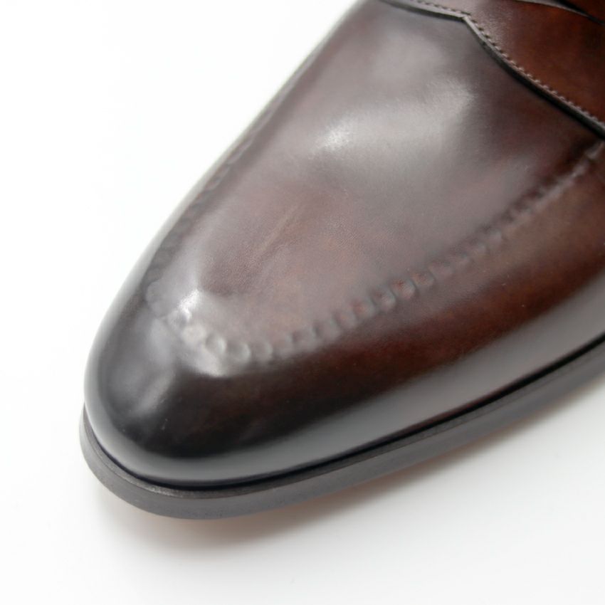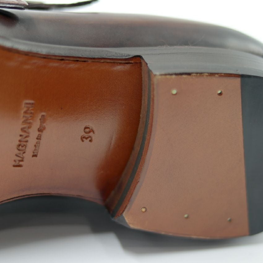 マグナーニの靴作りは高品質なイタリア・フランス・スペイン産のヌメ革で靴の原型を作り、芸術的なハンドフィニッシュの後染めを施すのが特徴的。