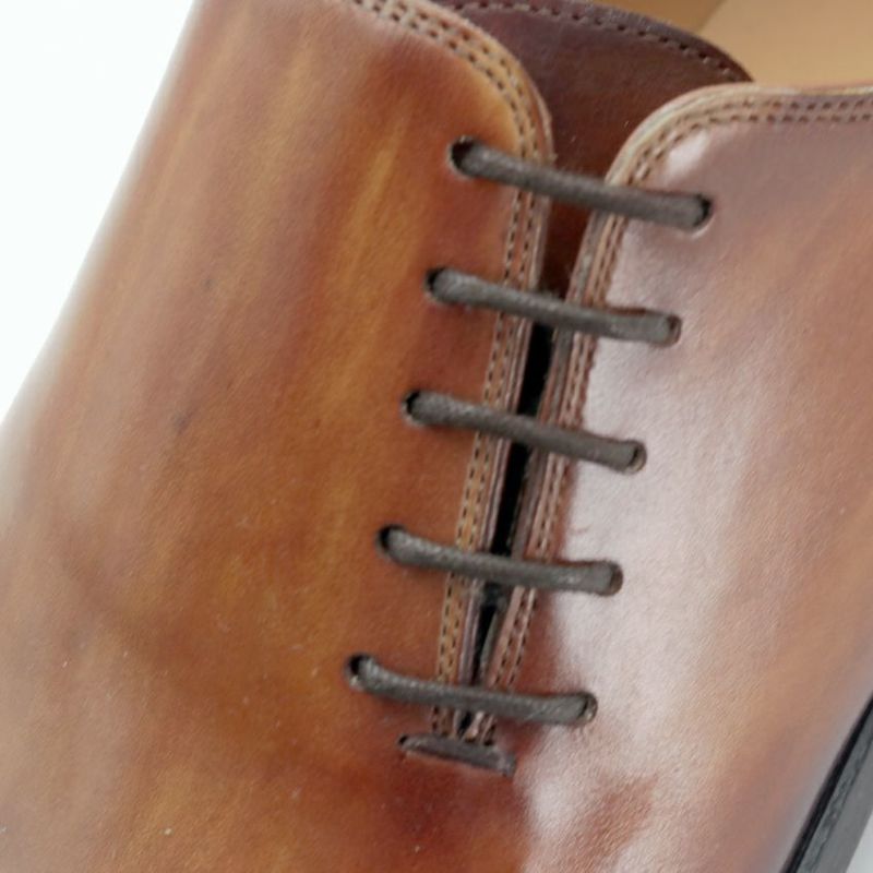 マグナーニのシューズに用いられる「パティーヌ仕上げ」により、グラデーション上に深みのある色合いの美しい表面が特徴です。色を何層にも重ねて染め上げており、手作業ならではの独特のムラ感が高級感を感じさせるポイントです。