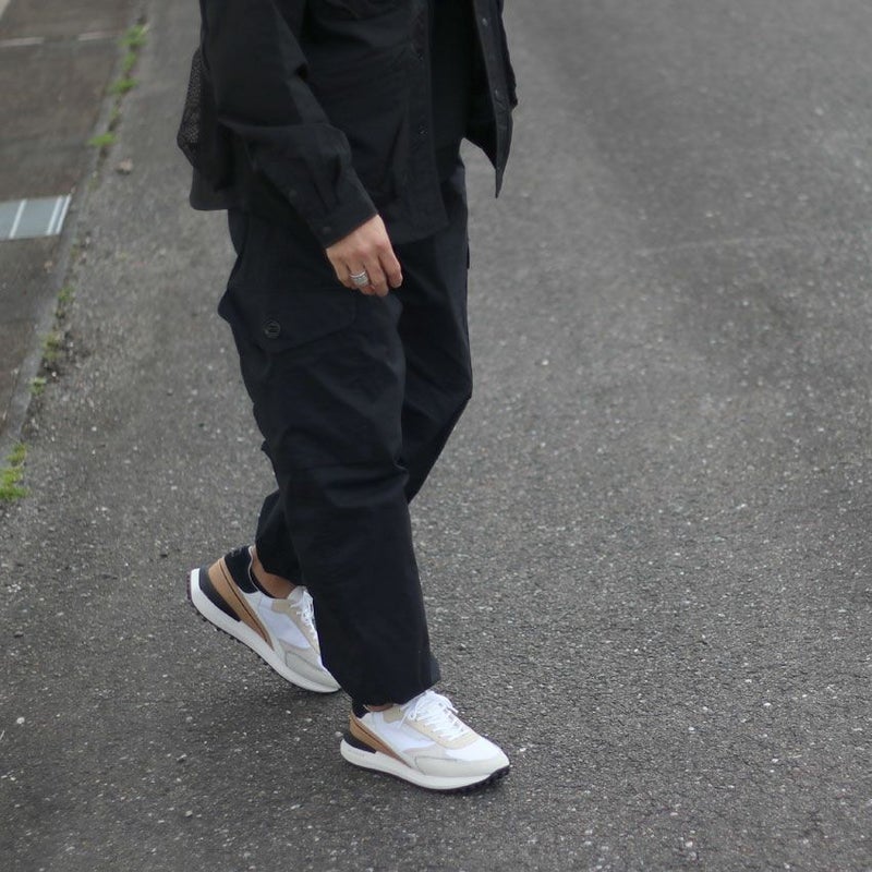 ニュアンスカラーを基調としたブラウン・ベージュをベースに、インパクトのあるソールデザインによりメリハリのある一足に仕上げています。
