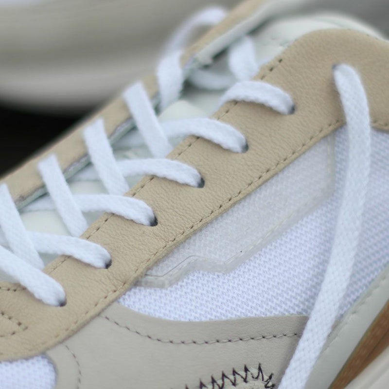 細めのフォルムにボリューム感のあるヒールをミックスしたスニーカーでありながら上品でラグジュアリーな印象のデザイン。