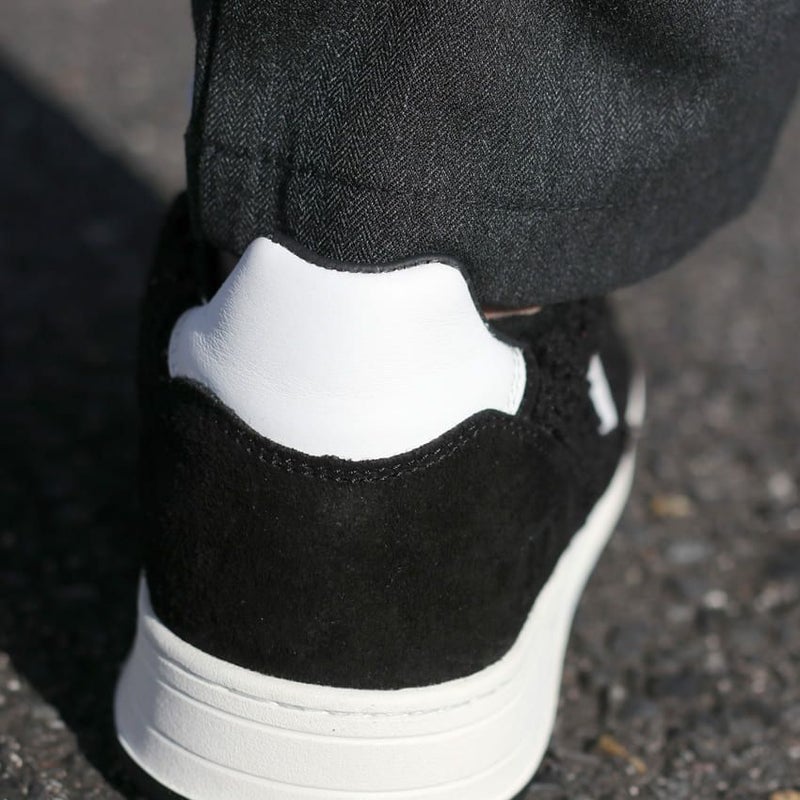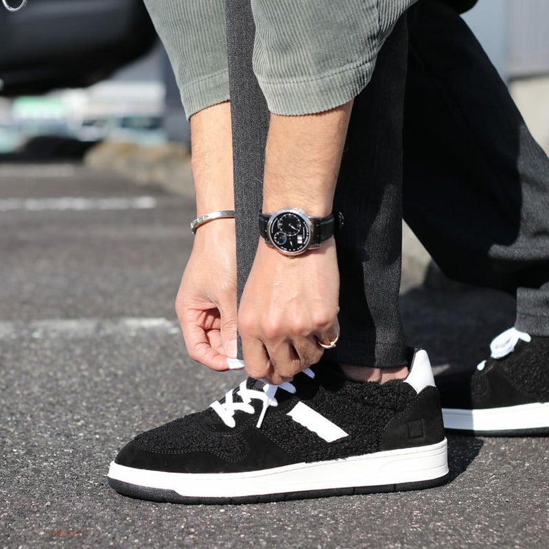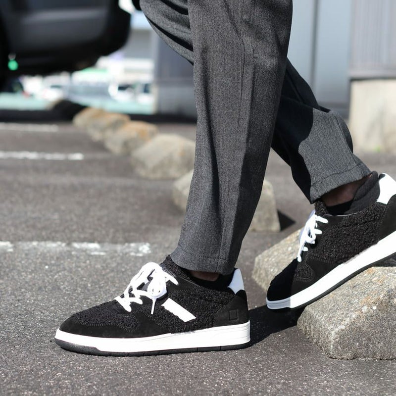 アウトソールは少し厚めのゴムソールにコーティングを施しており、D.A.T.E.らしい高級感のあるスニーカーに。