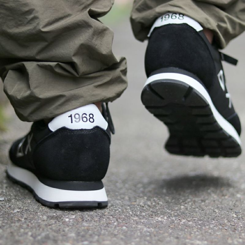 ブラックベースのスタイリッシュなデザインで大人の休日カジュアルに最適。