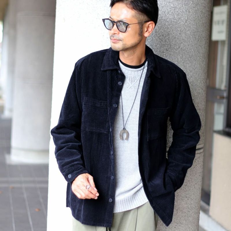やや厚手の生地で、ジャケットとしてもシャツとしても使える定番アイテムです。