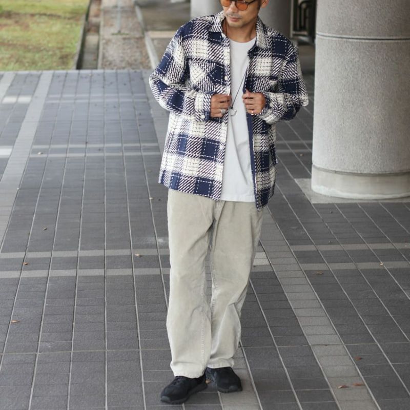 やや厚みがある質感でシャツとしてはもちろんのこと、ライトアウター感覚で着用できるアイテムです。