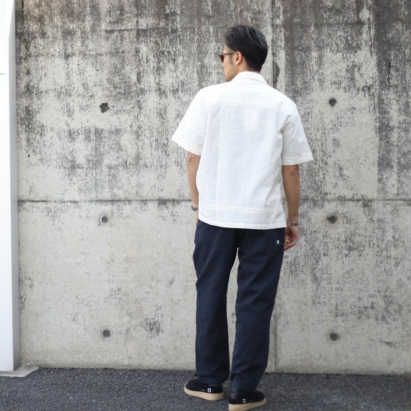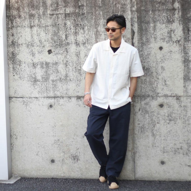 生地は、やや柔らか目な風合いの強く出るコットンリネンを使用しこなれ感&クラシックな雰囲気を漂わせたシャツとなっています。