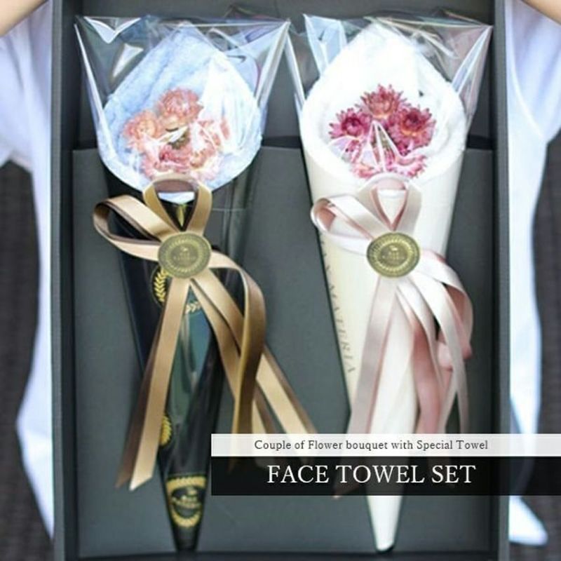 フラワーブーケをモチーフにした特別感たっぷりなフェイスタオル2枚セットのBOXギフト。