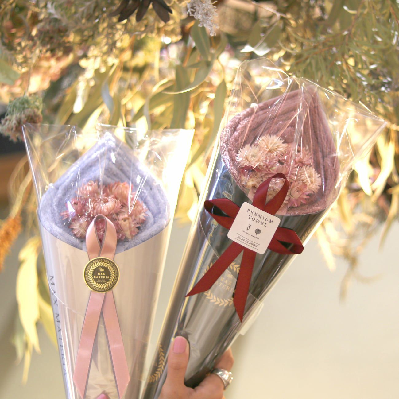 フラワーブーケをモチーフにした特別感たっぷりなバスタオルギフト。
