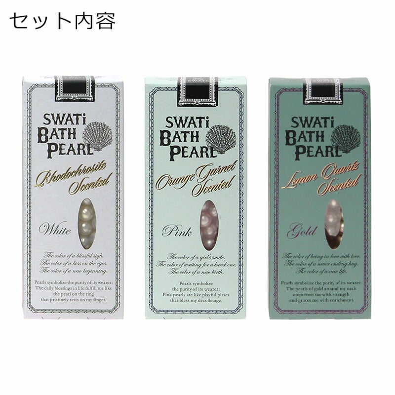 パールをモチーフにしたSWATi人気No.1のオリジナル入浴料「バスパール」の、3種の香りがオリジナルパッケージ入った「SWATi BATH PEARL COLLECTION」。
