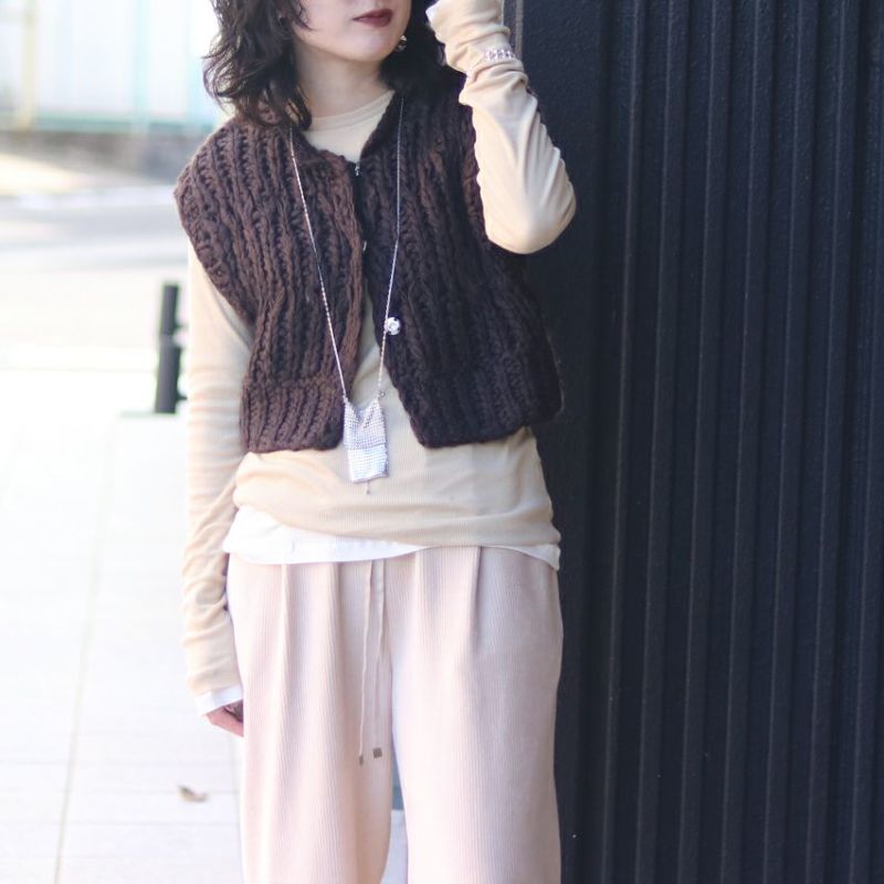 イタリア糸を使用し、一つ一つ丁寧に手編みされたニットベスト。