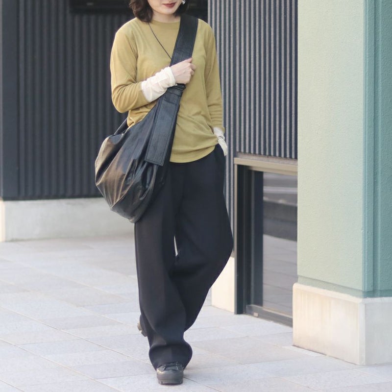 スニーカー合わせはもちろん、ヒールを合わせたキレイ目なスタイルも様になる一枚です。