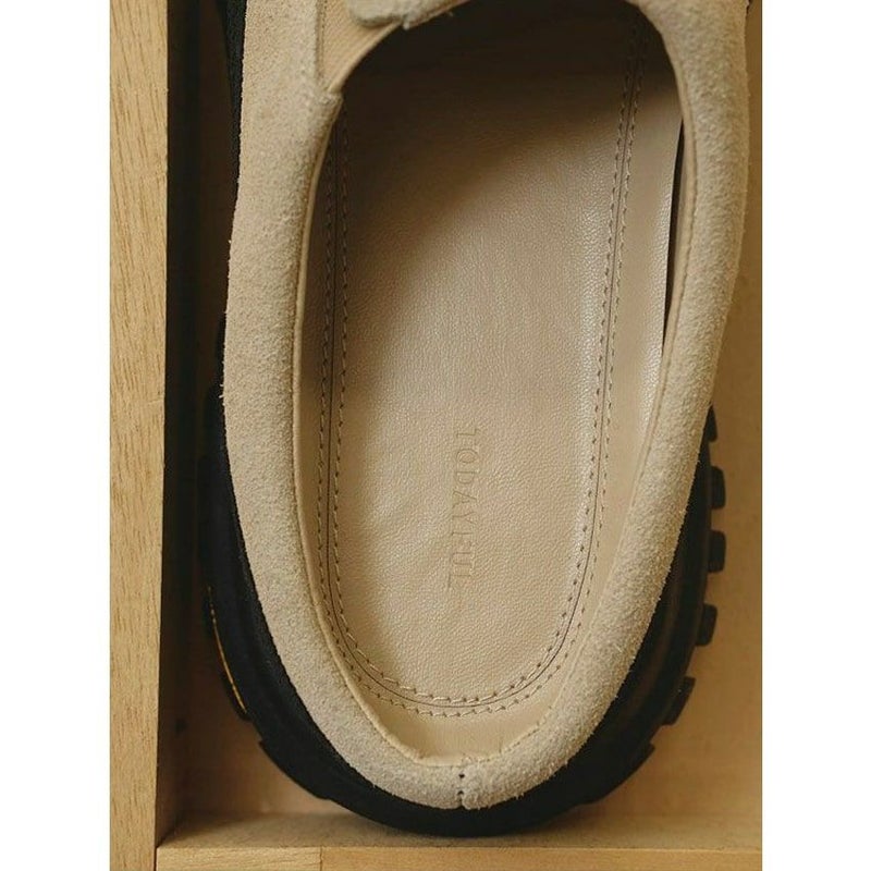 上質な2色のスエードを贅沢に使い、アッパーとサイドに美しいコントラストを生むデザイン。