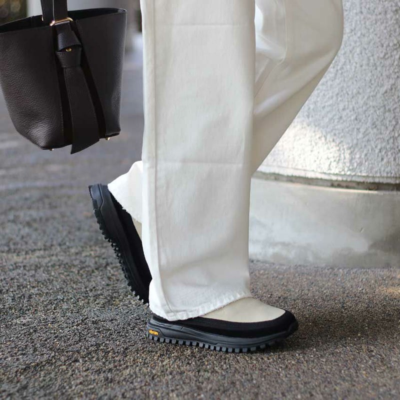 カジュアルな印象のサボも、スエードの高級感とゆったりとしたフォルムにより、どこか品のある“大人顔”な仕上がりに。