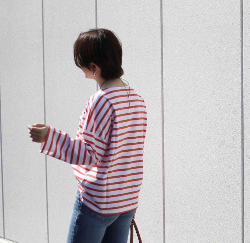定番のボーダー柄はデニムやワイドパンツ、スカートなど様々なボトムスと合わせられて、汎用性が高いのも嬉しいポイントです。