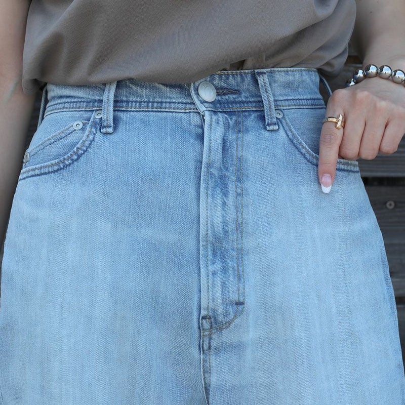 素材はYANUK定番のストレッチデニムです、肉感を拾いにくい適度なハリ感がありながらも柔らかい穿き心地で、美しいレッグラインを実現しています。