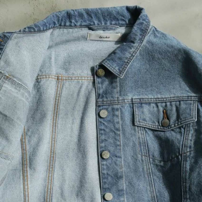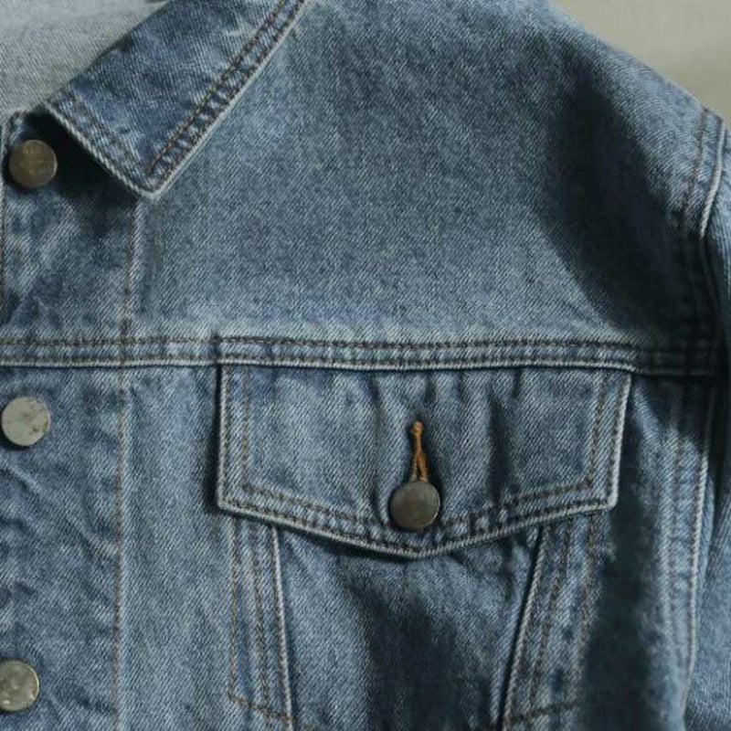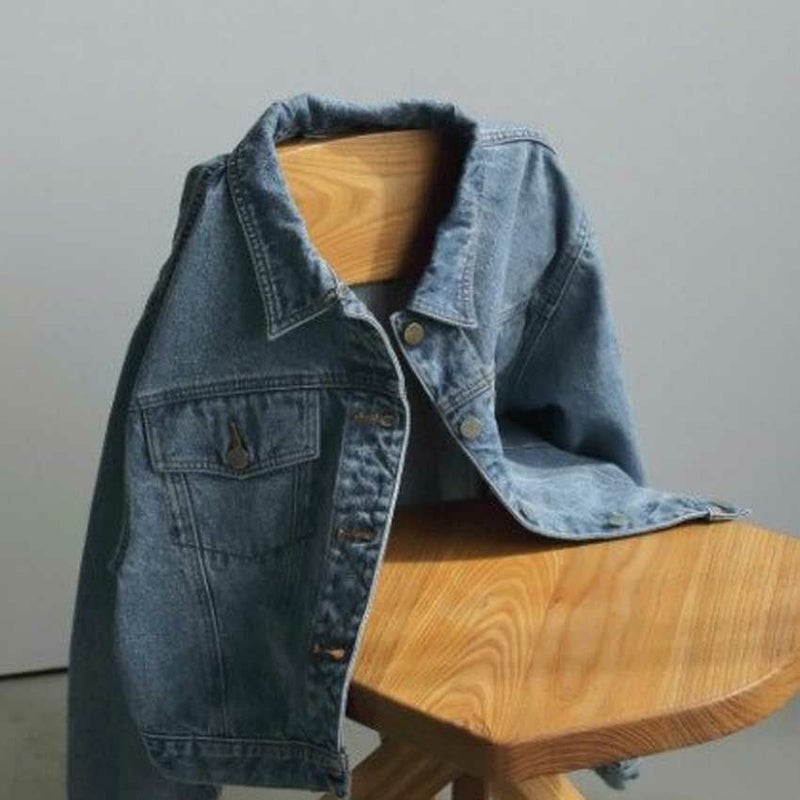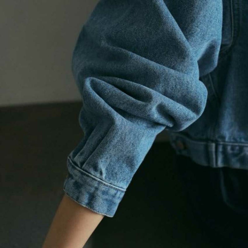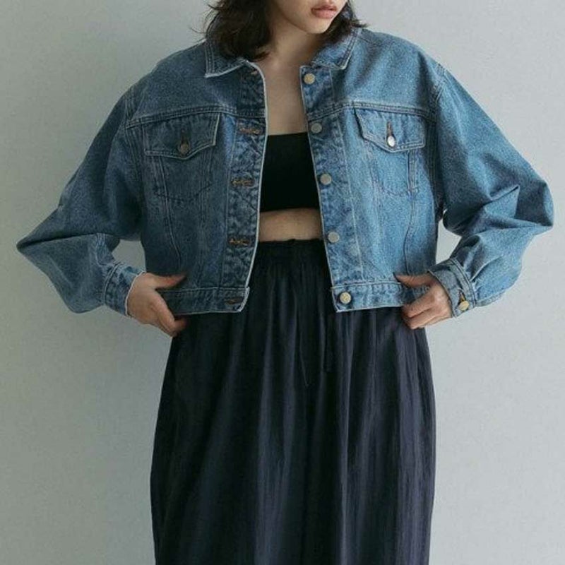 ヴィンテージ感あるブルーカラーのデニムジャケット。ワンピースや幅広いボトムと合わせやすいショート丈。