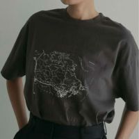 繊細なラインのマップ柄がスタイリングのポイントになるプリントTシャツ。