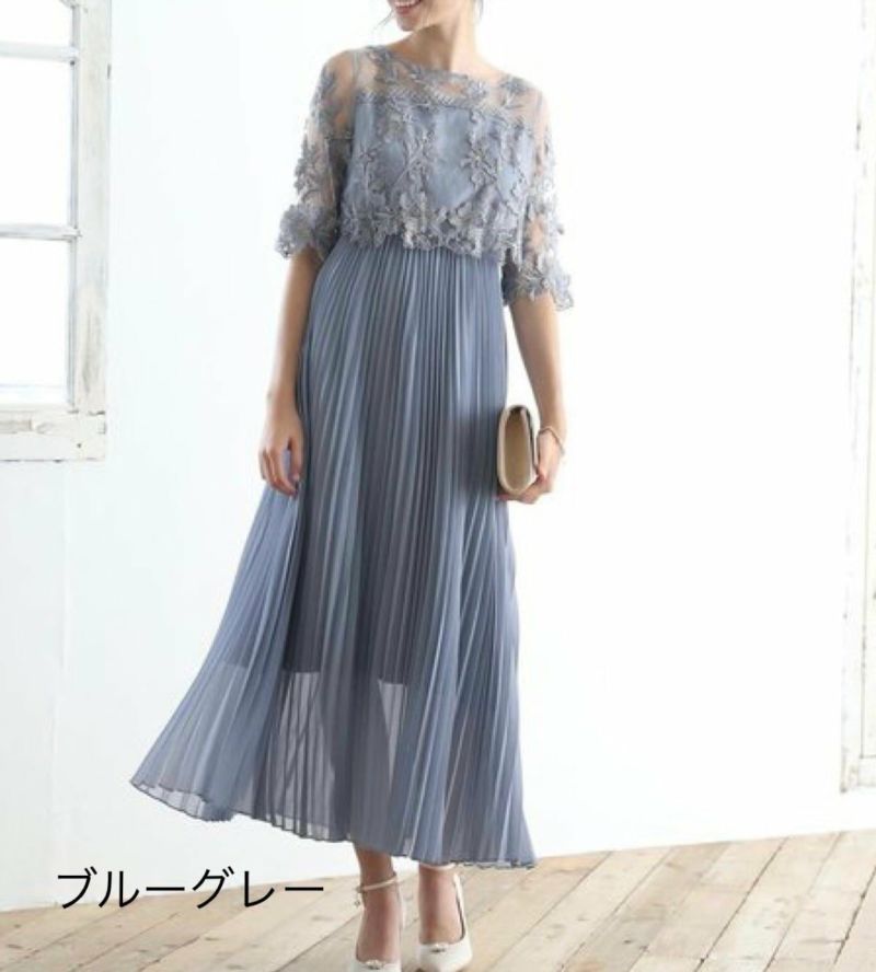デコルテラインを綺麗に魅せてくれる魅力的なシアー感のあるオリジナル刺繍レース使いのワンピースドレス。