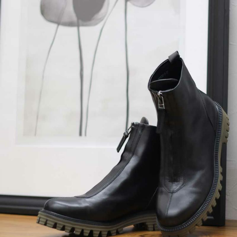 トレンド感のあるタンクソールに、ほどよい光沢が魅力の高級牛レザーを使用し、大人の足元に上質な存在感をプラスします。