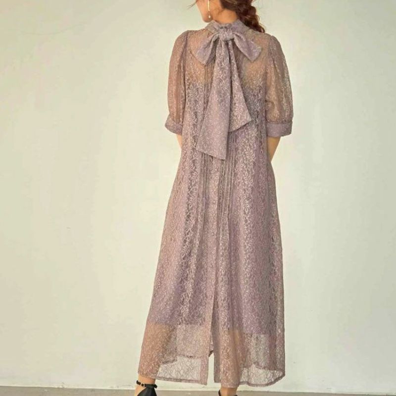 後ろ結びのリボン衿は、可愛くなりすぎず大人っぽく着用して頂け、リボンを自分なりにアレンジして、位置を変えて結んでもOK。