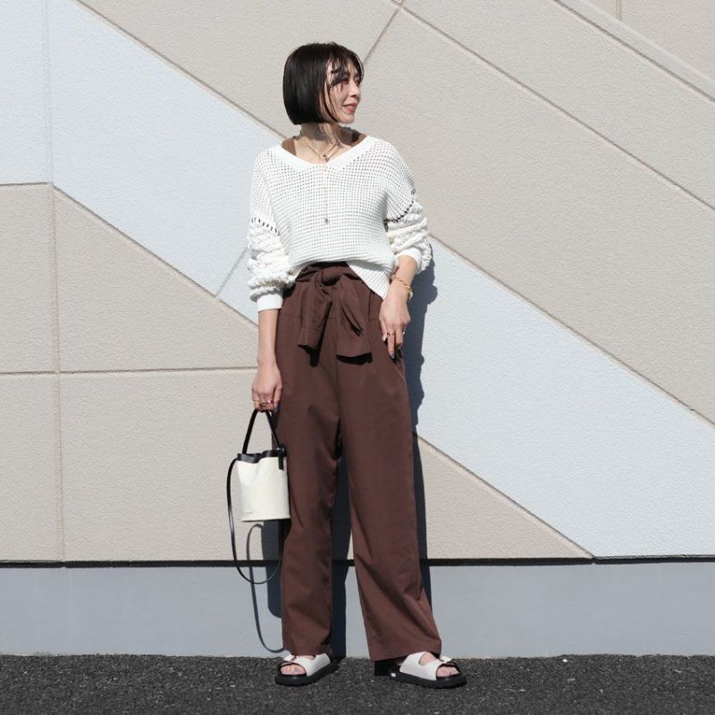 シンプルなボトムを合わせるだけでもこなれ感が出るので、忙しい朝のスタイリングが決まります。