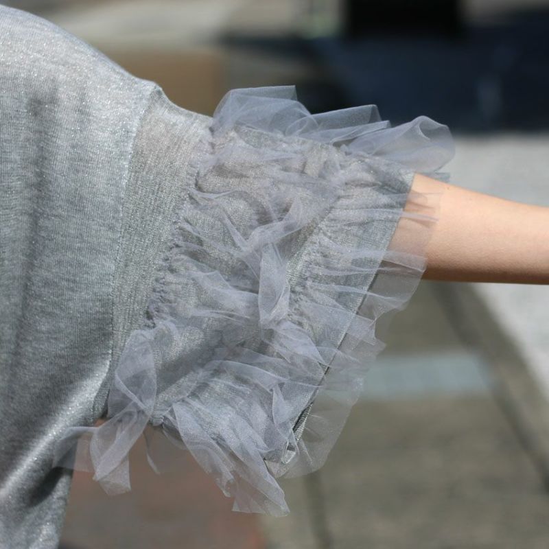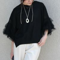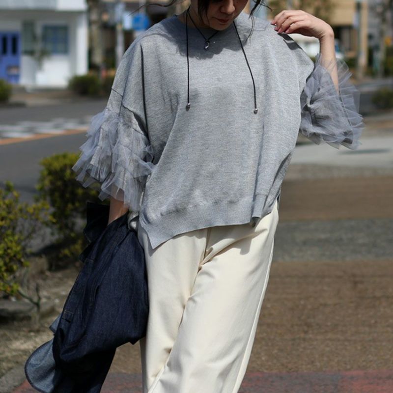 3段チュールのボリューム袖が視線を引く薄手のサマーニット。