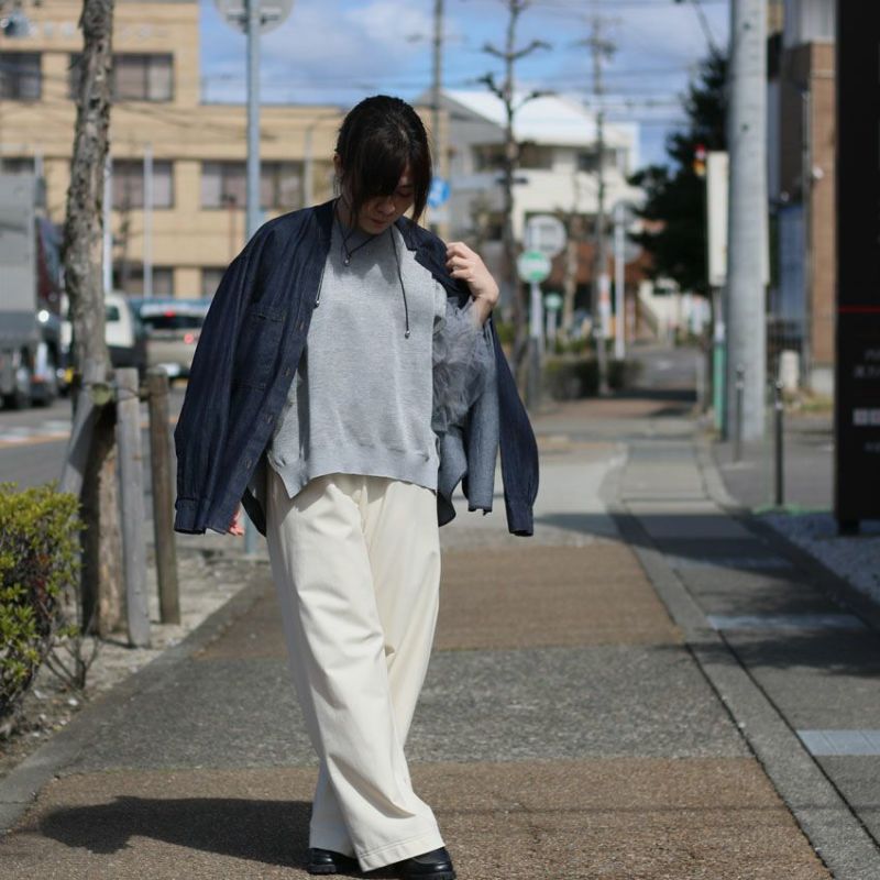 オーバーサイズの広い袖が着物風の雰囲気を醸し出し、肌離れを実現しつつ、こなれた印象を作り出します。