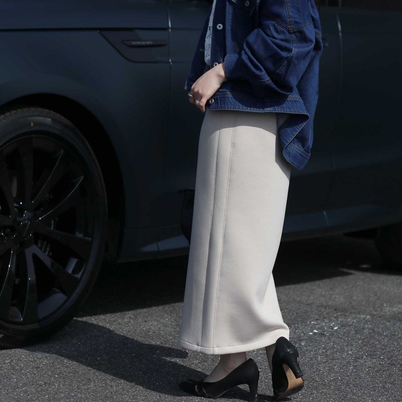 一度穿いたら手放せなくなる、“もちもち感”が魅力のダブルフェイスIラインスカート。