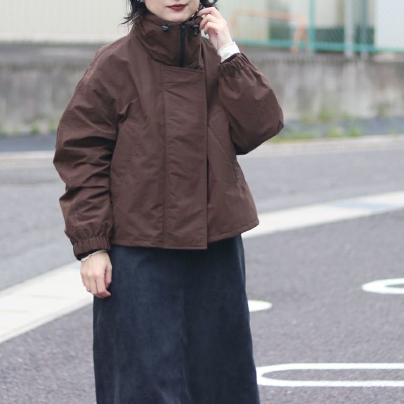 スタンドカラーや身頃裾のストレッチコードでブラウジングも可能なので、シルエットの微調整も自由自在。