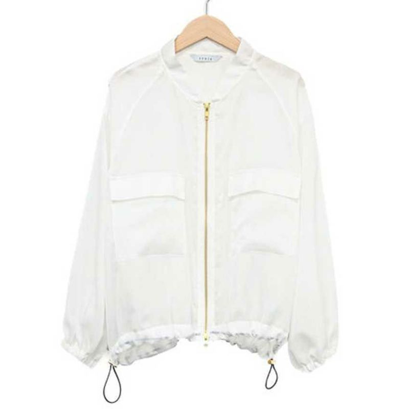 trois/トロワ ブライトスパンボイル スタンドネックJIPブルゾン T251-83021 シアー ショート丈 ライトアウター