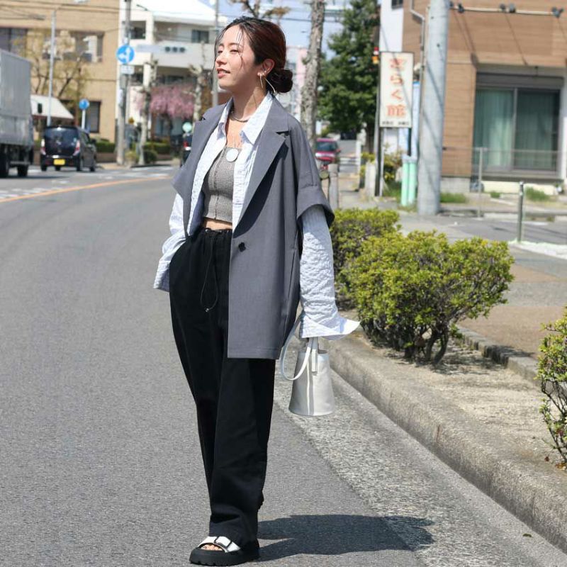 ロンTやシャツスタイルに合わせてレイヤードコーデを楽しむもよし。