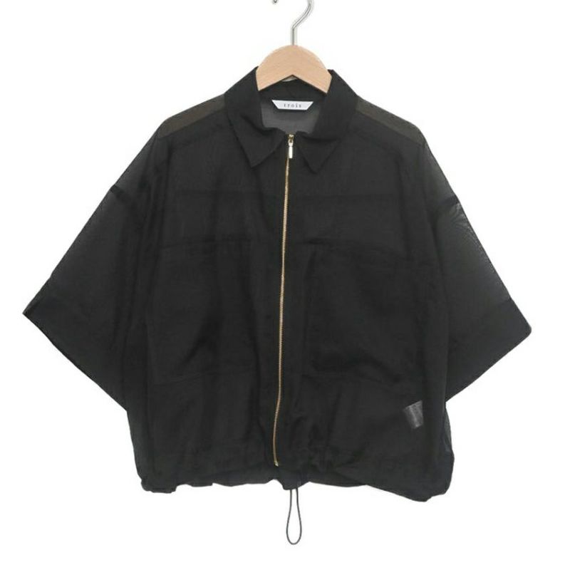 trois/トロワブライト  スパンボイル ハーフスリーブJIPシャツ T256-83073 シアーブルゾン シアー 半袖ブルゾン