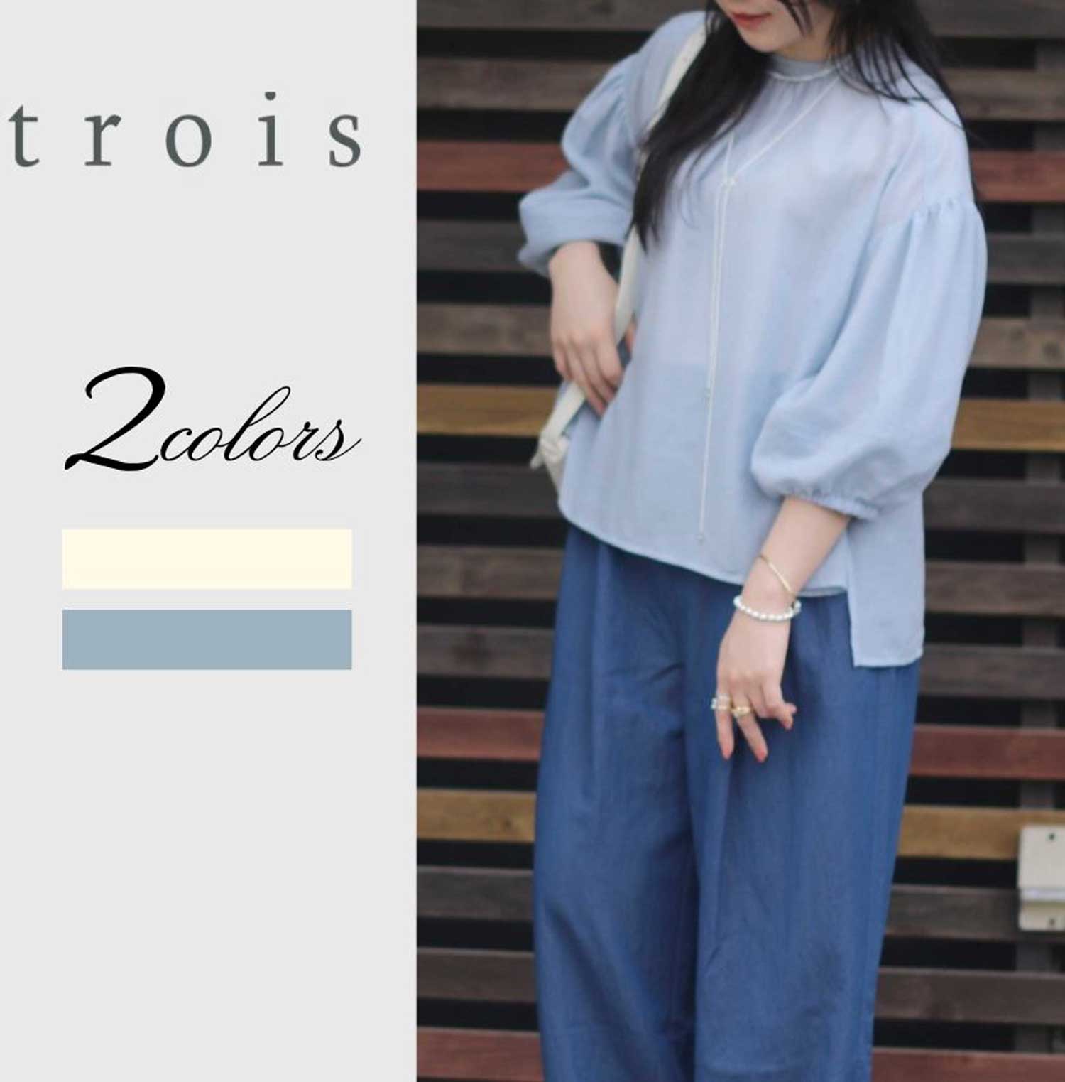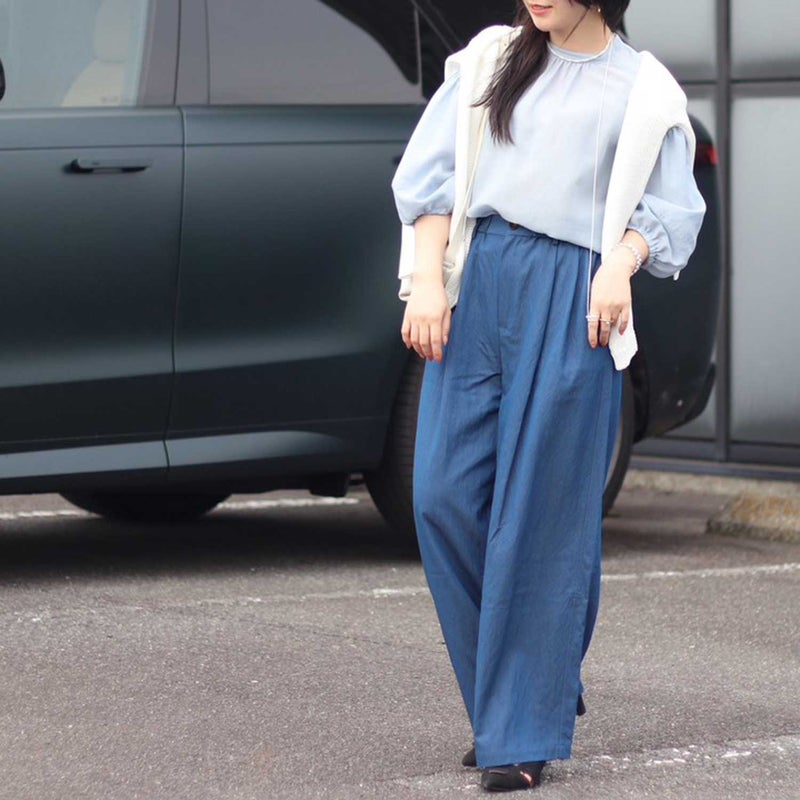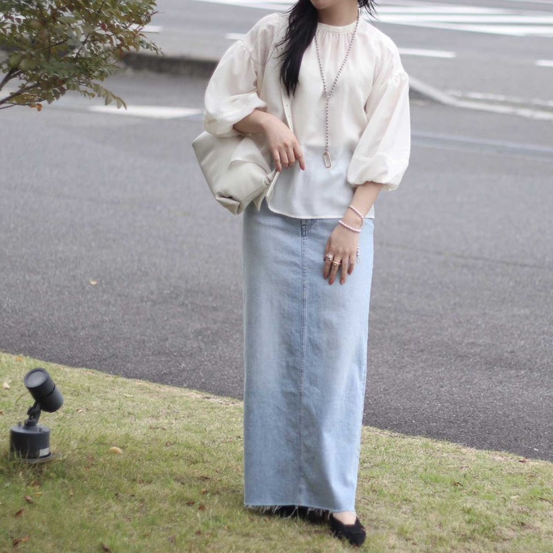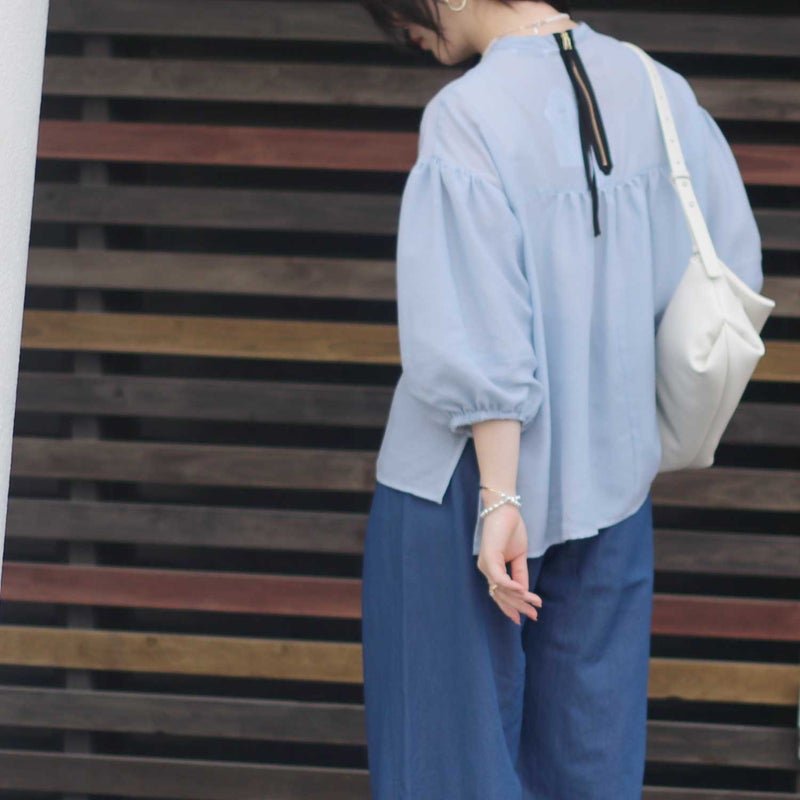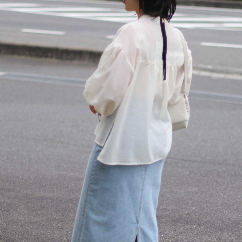 シアー感のある軽やかな素材が、着るだけで季節感と抜け感を演出してくれるバルーンスリーブブラウス。