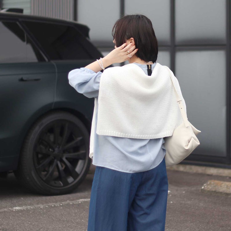 後ろ姿まで抜かりなく、さりげない女性らしさを引き立ててくれる一枚です。