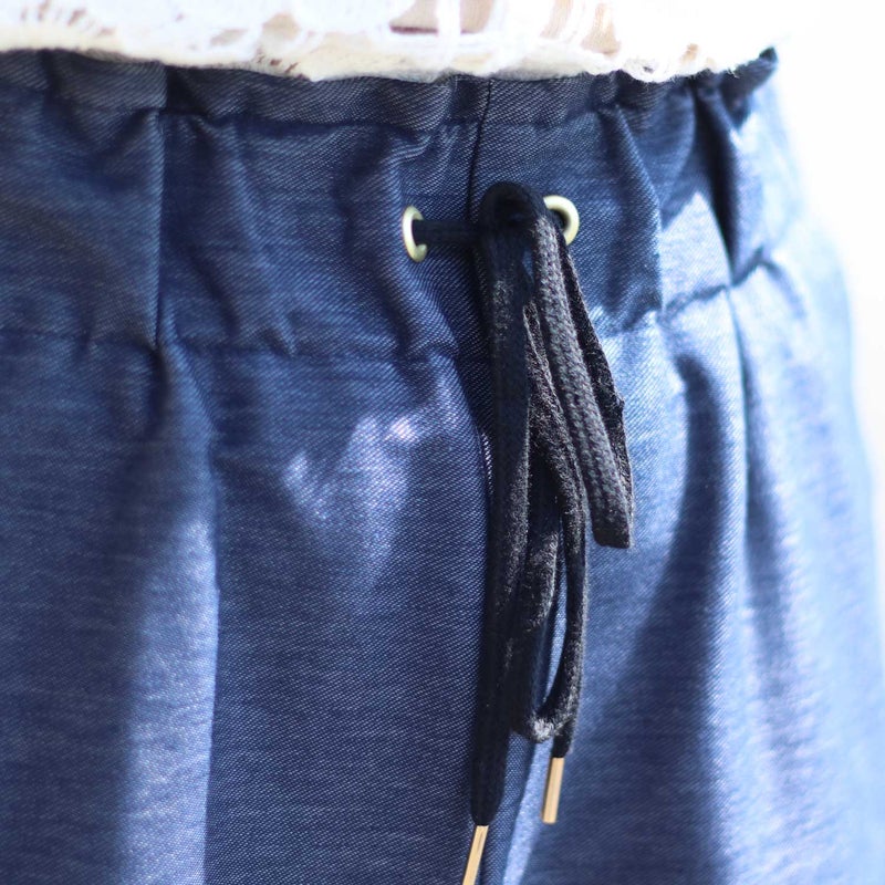 ウエストは総ゴム仕様でストレスフリー。それでいてラフに見えすぎない絶妙なバランスに仕上げています。