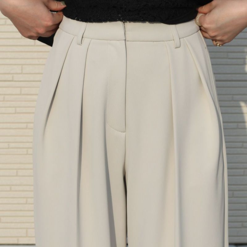 また、セミワイドパンツなので小柄な女性でも綺麗に合わせていただけます。