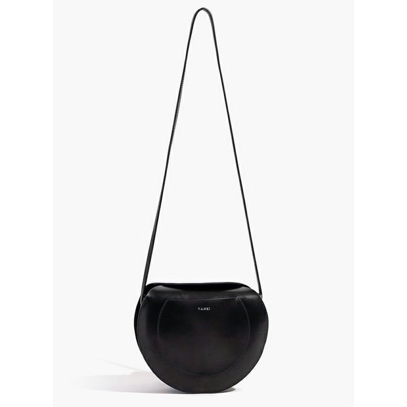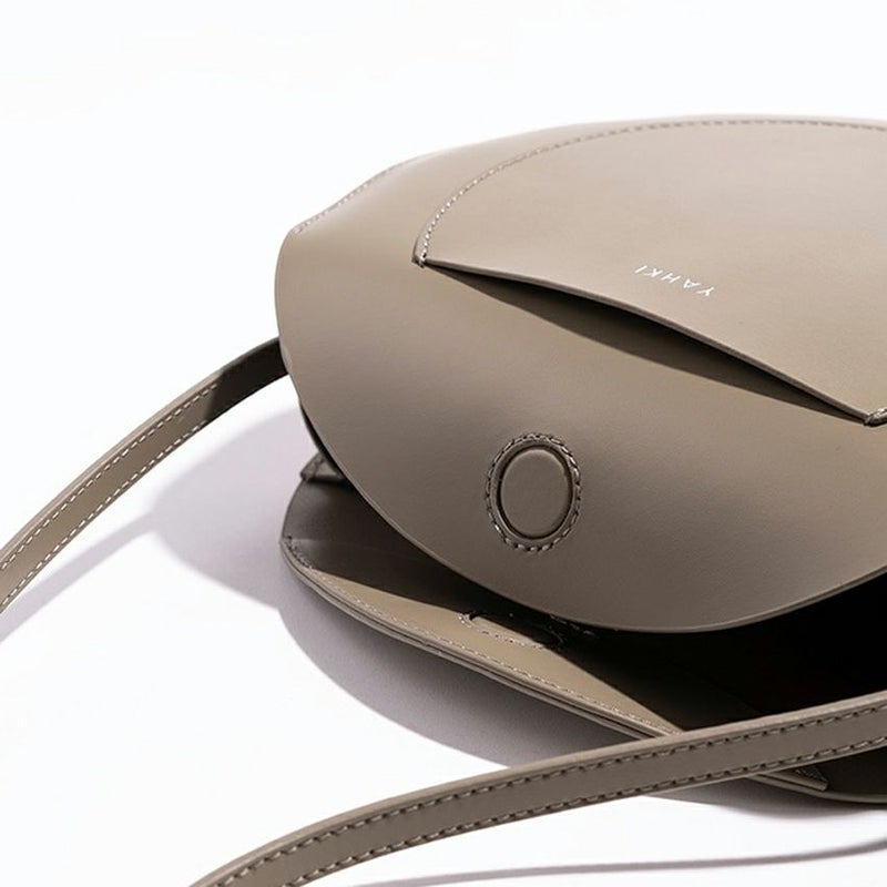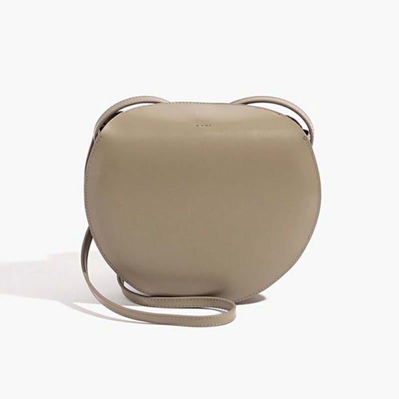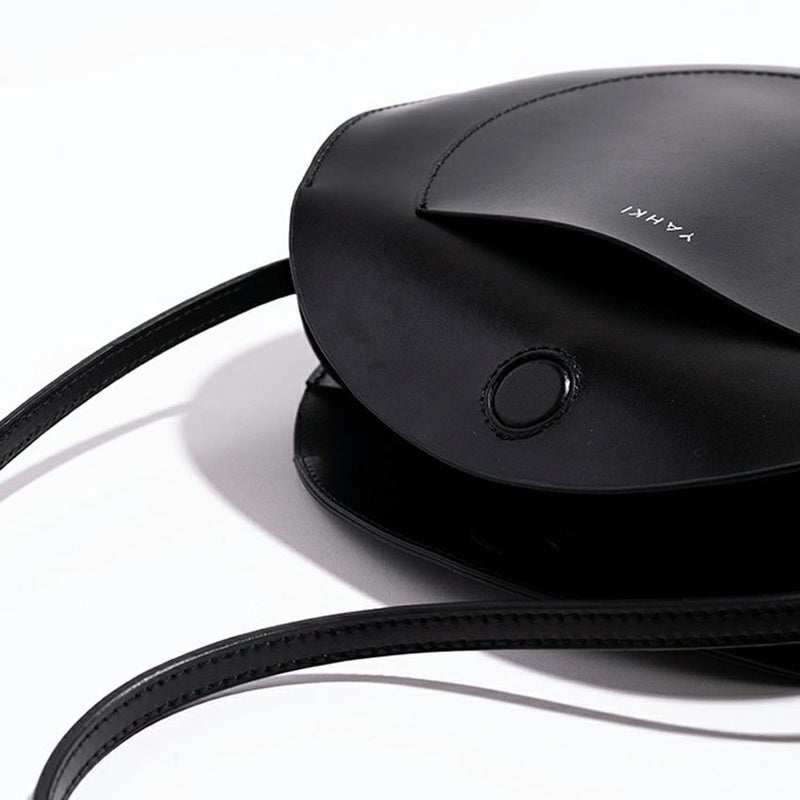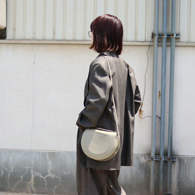 W FACEレザーの円がモチーフのクロスボディバッグ。
