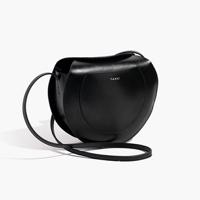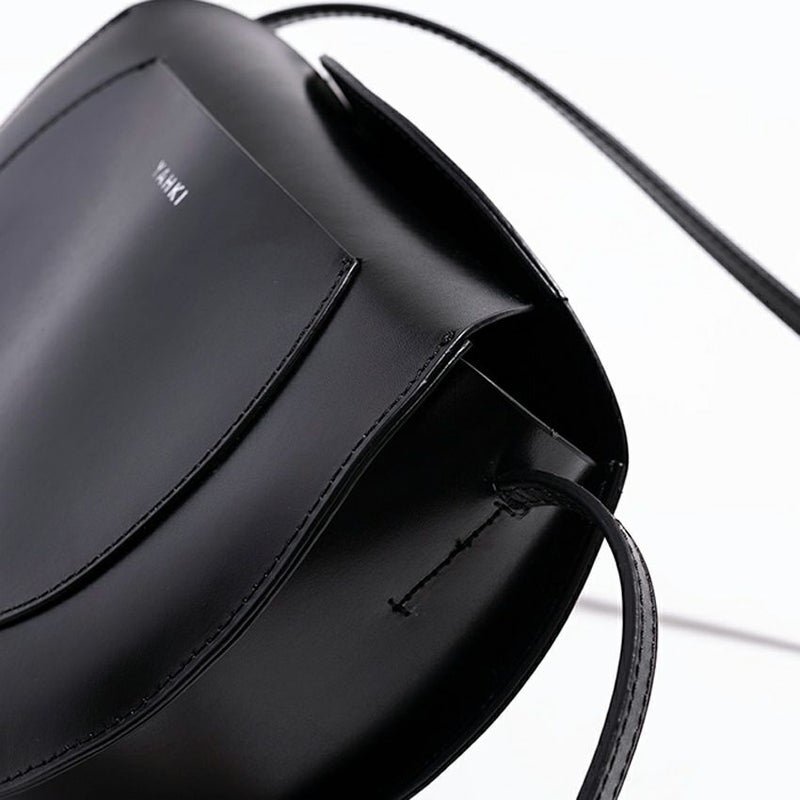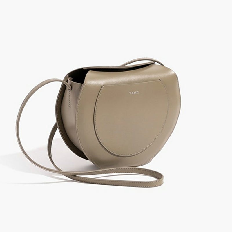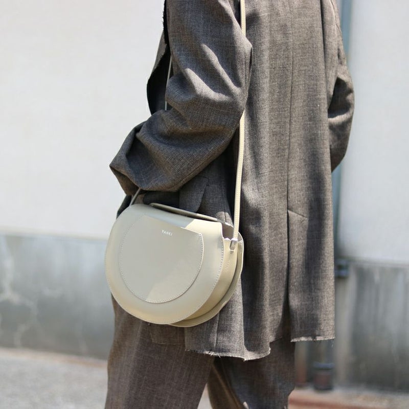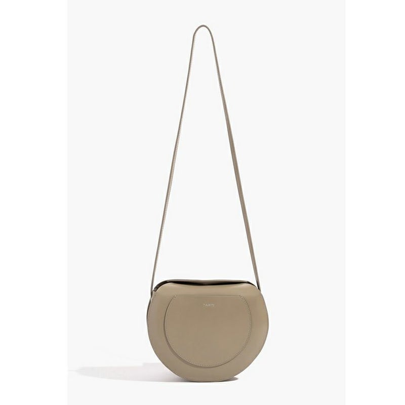 W FACEレザーの円がモチーフのクロスボディバッグ。