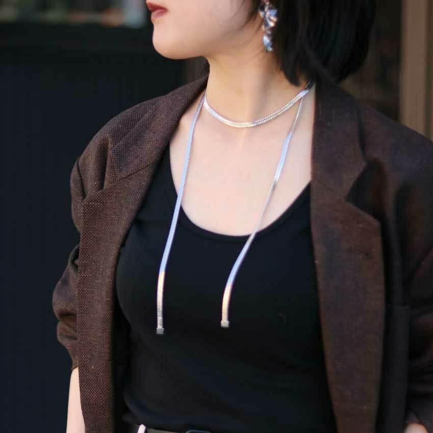 ハンドメイドアクセサリーブランドSead’s maraのスネークチェーンラリアットネックレス。