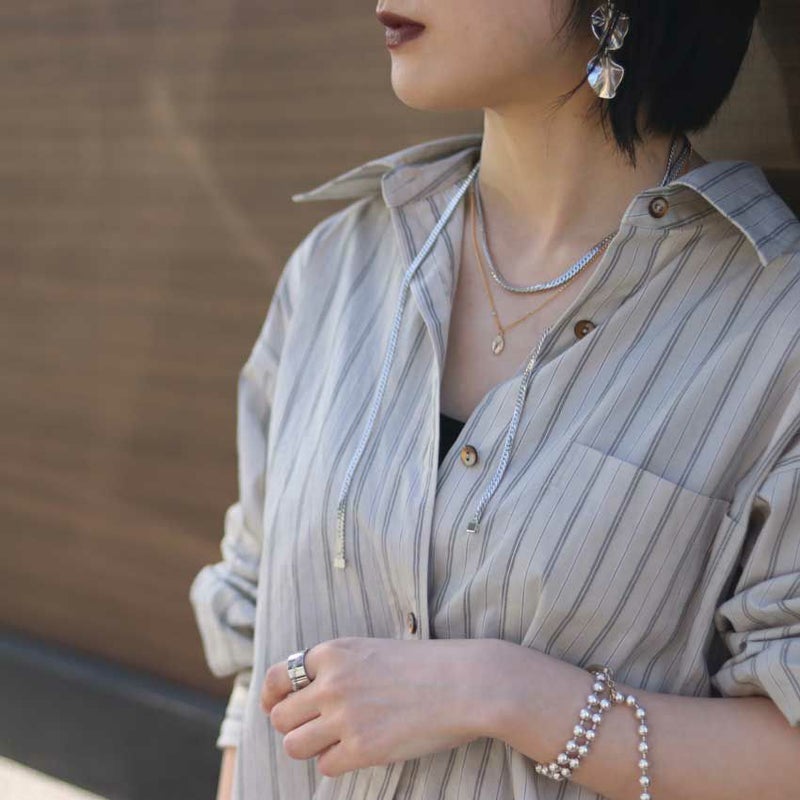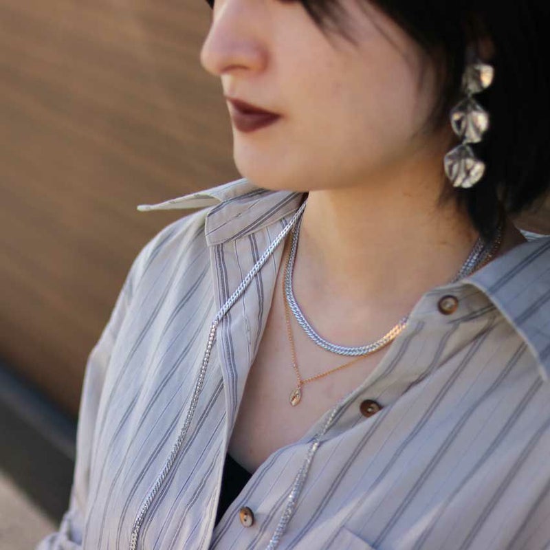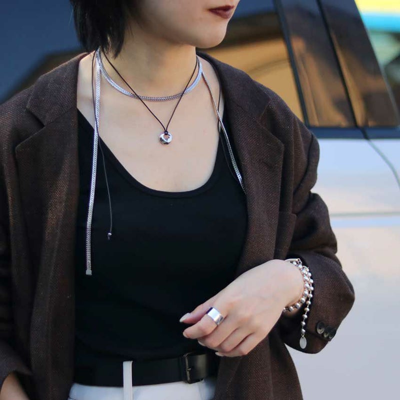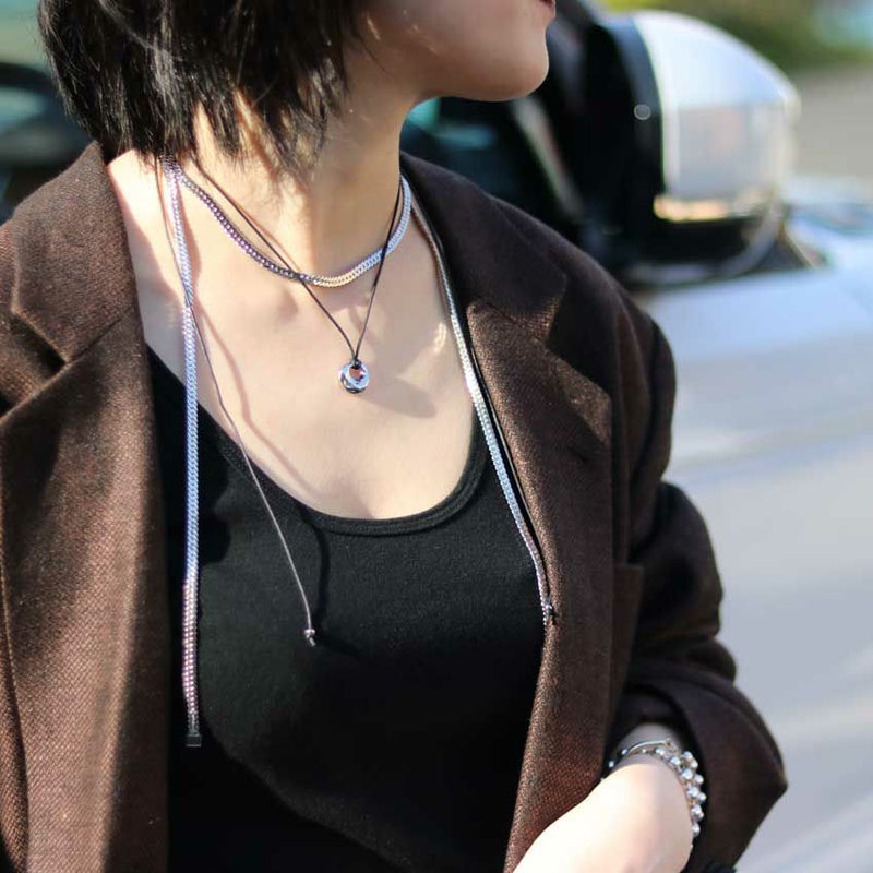 個性的なスネークチェーンがいつものコーデをグッとオシャレに演出してくれます。